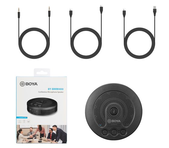 BOYA BMM400 er en omni directional (kugle) konferencemikrofon med højttaler, den er specielt