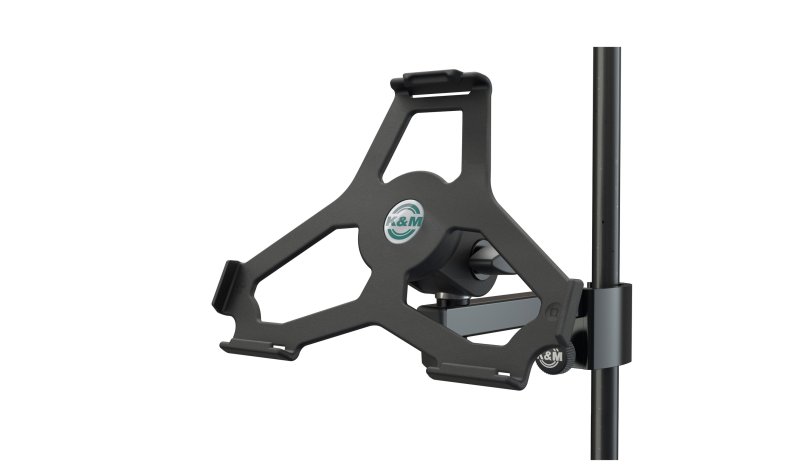 Den smarte måde at fremvise din iPad Air på. Det nye klemmebeslag holder iPad Air'en sikker. Hvad enten om det er på scenen, i øvelokalet, eller derhjemme, lader det stærke prismatiske element med ergonomisk klemmeskrue iPad-holderen blive fastsat hurtigt og nemt på rør med en diameter på op til 30 mm. iPad Air'en er let at sætte på og tage af holderen. Brugeren kan sætte iPad Air'en i sin foretrukne position. Drejeledet kan justeres frit fra modstand.