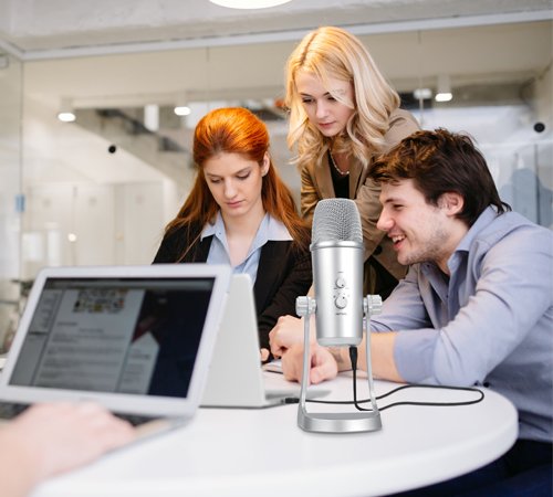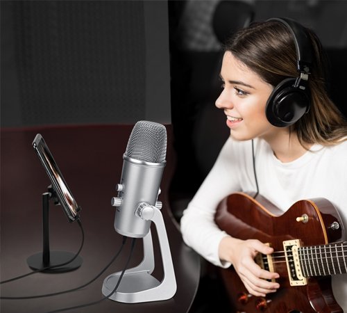 Denne mikrofon har holdbar al metalkonstruktion, inkluderer skrivebordstativ, der kan justere mikrofon i forskellige ønskede vinkler, også funktionalitet af