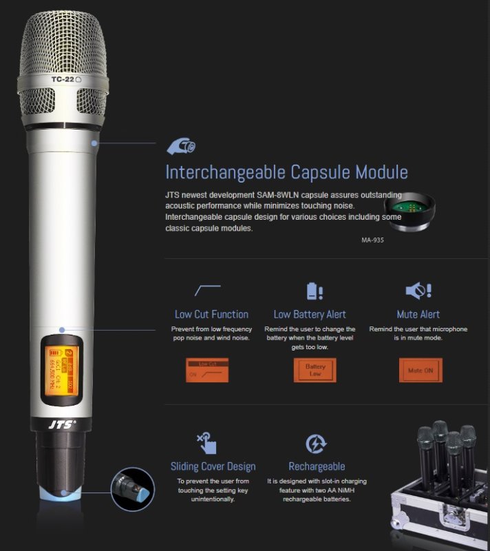 JTS mikrofonsæt 75 MHz Wideband 1 kanals modtager og lommesender