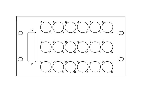 SMRT PAN 1/2 19" 3U, 1 pcs 30 pins DIN Tuchel + 18 pcs Neutrik XLR D connectors. Supplied with 36 x M3 x 6 screws